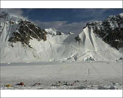 - Image Description: Tents and climbers at base camp facing Lisas Gap, Denali National Park, Alaska, United States of America, North America